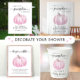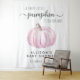 Bela menina chá tapeçaria bem-vinda placa de boas-vindas e protetor fotográfico com uma aquarela pastel rosa e "A Sweet Little Pumpkin Is On Her Way" em uma mistura de tipografia de cinza e um roteiro de na moda com pestanas. Personalize com o nome da futura mãe e a data do chá.