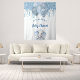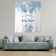 Para um Chá de Bebê elegante. Um fundo branco chique. Decorado com gotas de brilho falsas, efeito de tinta pingando, brilho, serpentinas de festa, balões azuis e prateados e um adorável elefante bebê menino. Personalize e adicione o nome e uma data. Pode ser usado como um banner de boas-vindas, decoração de parede para o chá de bebê ou como um fundo para fotos.