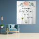 Elegante, clássico e moderno banner de chá de bebê em estilo floral, tapeçaria que celebra uma menina. Decorado com flores em estilo aquarela rosa dourado, rosa e branco e folhagens de eucalipto. Com o texto: Chá de Bebê escrito em um estilo de letra manuscrita preta moderna e grande. Personalize e adicione o nome da futura mãe e uma data.