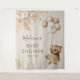 Tapeçaria de chá de bebê de urso boêmio com fundo marrom claro, urso de bebê em aquarela vintage, balões, grama pampas rústica boho e flores, além de um modelo de texto moderno fácil de personalizar.