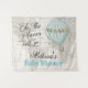 Plano de fundo do Balão de Ar Quente com um balão de ar quente azul em um fundo do mapa. Este pano de fundo do chá de fraldas é facilmente personalizado para o seu evento adicionando texto.