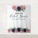 Flores, flores em rosa e azul com folhagem verde. Personalize e adicione o nome da noiva e a data. Letras pretas. O texto: Chá de noiva é escrito em um estilo de letra manuscrita moderna. Pode ser usado como um banner de boas-vindas, decoração de parede de festa ou fundo para cabine de fotos.