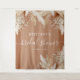 Tapeçaria rústica de chá de noiva boêmio com fundo terracota e estrutura em arco, folhas de palmeira secas desenhadas com aquarela, grama pampas e um modelo de texto elegante que é fácil de personalizar.