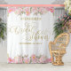 Fundo de cabine de fotos para o seu chá de noiva. Este design personalizado apresenta caligrafia elegante e arranjos florais de aquarela de flores rosa e douradas com um toque de verde. O modelo está configurado para você personalizar com o nome da noiva e a data da ocasião. Chá de Noiva é escrito à mão em caligrafia espiralada. Por favor, explore minha loja para encontrar convites, placas e etiquetas coordenadas.