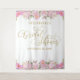 Pano de Fundo de Cabine de Fotos para o seu chá de noiva. Este design personalizado apresenta caligrafia elegante e arranjos florais em aquarela de flores rosa e douradas com um toque de verde. O modelo está configurado para você personalizar com o nome da noiva e a data da ocasião. Chá de Noiva é escrito à mão em caligrafia espiralada. Por favor, explore minha loja para encontrar convites, placas e etiquetas coordenadas.