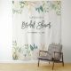Este espantoso pano de fundo da cabine de fotos de chás de panela apresenta flores de cor-de-água em tons de marfim, branco, pêssego e ouro, com folhas verdes. O script manuscrito de tendências de correspondência adiciona um toque de na moda extra.