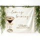 Defina o tom da sua celebração com esta tapeçaria de boas-vindas de chá de panela superdimensionada da Coleção Love is Brewing. Com arte moderna de martíni de café expresso e detalhes modernos desenhados à mão, esta grande tapeçaria é uma peça de destaque impressionante para a entrada do seu chá de panela, cenário de fotos ou mesa de presentes. Seu tema divertido “O amor está fervendo” cria uma atmosfera elegante e convidativa, perfeita para os amantes de café e coquetéis. Projetado para ser moderno e inesquecível, este cenário transforma qualquer espaço no cenário definitivo para o chá de panela.