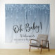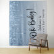 Uma tapeçaria de fundo de fotografia de boas-vindas elegante e luxuosa para o chá de bebê do seu menino, que apresenta brilho falso azul pingando do topo e "Oh Bebê!" em um script estiloso contra um fundo azul ombre. Personalize facilmente o nome da futura mãe.