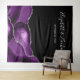 Esta elegante tapeçaria fotográfica do casamento mostra um design de agata roxo e prateado sobre fundo preto. Personalize-o com os nomes da noiva e do noivo na letra de cinza de prata pálida seguida da data.