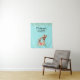 Tapeçaria de chuva de bebê com um desenho fofo em aquarela de uma mãe e um bebê giraffa. A girafa mãe está apoiando a cabeça em cima do bebê giraffa, amorosa e adorável. Bela pintura em aquarela de flores cor-de-rosa, amarelas e verdes colocada abaixo deste par encantador. Folhas decorativas pendem do topo. Fundo azul claro.