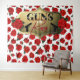 Tema de Chuva de Bebê Revelação de Gênero: Armas ou Rosas com Faixa Dourada em Preto e Vermelho e Fundo de Rosas Vermelhas ©2021 Miss Sassy Party Designs