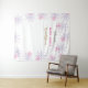Chuva de noiva tema winter wonderland banner de boas-vindas ou tapeçaria com flocos de neve rosa e roxo. Inclui fonte de letra em script bonita em dourado falso e design de texto com brilho. Ter uma chuva de noiva tema winter wonderland é perfeito se for em dezembro ou inverno. Banner de chuva de noiva fofo e feminino. Ilustração digital por Kristine Lee. Para mais, visite www.kristineleedesigns.com