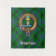 Crachá da crista Clan Henderson cercado por uma correia e fivela sobre fundo tartano. Custom Text.