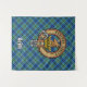 Crachá da crista Clan Keith cercado por uma correia e fivela sobre fundo tartano. Texto personalizado.