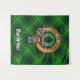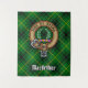 Crachá da crista Clan MacArthur cercado por uma correia e fivela sobre fundo tartano. Custom Text.