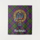Clan MacDonald do crachá da crista Clanranald rodeado por uma correia e fivela sobre fundo tartano. Texto personalizado.