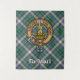 Crachá da crista Clan MacDowall rodeado por uma correia e fivela sobre fundo tartano. Custom Text.
