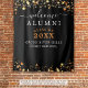 Crie um sinal de boas-vindas de uma reunião de classe negra e laranja, decoração de festas ou pano de fundo de fotos com o título WELCOME ALUMNI em uma tipografia de rico moderna, ano de aula editável e nome de sua escola, faculdade ou universidade ou outro texto personalizado acentuado com estrelas de ouro. Projetado para ser reutilizável para futuras reuniões. OPÇÕES DE TAPESTRY: O exemplo é mostrado no tamanho de 68x80" — outros tamanhos estão disponíveis na página de pedidos. ASSISTÊNCIA: Para obter ajuda sobre modificação/personalização do design, alteração de cor, redimensionamento, transferência do design para outro produto ou se você quiser coordenar itens, entre em contato com o designer ANTES DE PEDIR por meio do Zazzle Chat ou makeitaboutyoustore@gmail.com.