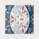 Banner decorativo com coelhos, flores e folhas sobre fundo azul. Arte popular. Banner reproduzindo coelhos, folhas e flores em um fundo azul, celebrando a exuberância da arte popular. Fundo azul, coelhos, folhas e flores brincam. A beleza da arte popular brilha claramente. fundo, padrão, abstrato, ilustração, textura, decoração, floral, poster, criativo, geométrico, site, ornamento, moderno, forma, têxtil, simetria, ornamental, artesanato, decorativa, coelho