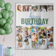 Cenário de aniversário com colagem de fotos personalizada e nome. Peça substancial de decoração de festa de aniversário, ótimo ponto de discussão e cenário perfeito para cabine de fotos ou entrada de boas-vindas. "Feliz Aniversário" é escrito em letra moderna e casual e tipografia em negrito. O modelo está pronto para você adicionar suas fotos em linhas, trabalhando da esquerda para a direita e exibirá suas fotos em uma combinação de formatos quadrados, retrato e paisagem. Tem uma paleta de cores cinza, azul e verde, mas se quiser alterar as cores, clique em "personalizar mais" ou me envie uma mensagem para obter ajuda.
