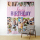 Cenário de aniversário com colagem de fotos personalizadas e nome. Peça substancial de decoração de festa de aniversário, ótimo ponto de discussão e cenário perfeito para cabine de fotos ou entrada de boas-vindas. "Feliz Aniversário" é escrito em letra moderna e casual e tipografia em negrito. O modelo está pronto para você adicionar suas fotos em linhas, trabalhando da esquerda para a direita e exibirá suas fotos em uma combinação de formatos quadrados, retrato e paisagem. Tem uma paleta de cores rosa e roxo, mas, se quiser alterar as cores, clique em "personalizar mais" ou me envie uma mensagem para obter ajuda.
