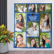 Este moderno tapete de colagem de fotos de graduado azul apresenta suas 9 fotografias favoritas de estudantes. Esta linda decoração de festa de formatura apresenta tipografia branca clássica do nome da sua escola ou faculdade para a turma de 2024. Personalize esta decoração de parede com o ano de formatura abaixo do chapéu de graduado preto. Apresenta 2 fotos horizontais, 5 fotos verticais e 2 fotografias quadradas.