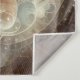Representação intrincada de abstrato de uma figura nutritiva que abraça duas crianças, composta por linhas fluentes e formas orgânicas. A imagem irradia calor e harmonia através de sua delicada mistura de elementos da terra e do etéreo, com órbitas brilhando suaves simbolizando a vida e o crescimento. Ao redor das figuras centrais estão padrões que lembram a beleza da natureza, enfatizando os temas do amor, da proteção e da interconectividade da vida.