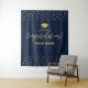 Esta tapeçaria moderna é perfeita para uma festa de formatura com tema de cores azul-marinho e dourado. Fundo perfeito para fotos para lembrar seu dia especial. O design apresenta tipografia dourada " Parabéns! " e um chapéu de formatura com fundo de confete. Você pode personalizar o texto. Se precisar de um design personalizado, entre em contato comigo por e-mail [barabomdesign@gmail.com] Obrigado!
