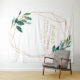 Este elegante pano de fundo de casamento de eucalipto apresenta detalhes pintados à mão acentuados com uma moldura dourada. É o pano de fundo perfeito para o seu estúdio de fotografia.
