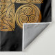 Uma intrincada cruz celta com eternas espirais e nós de trindade enfeita um pergaminho antigo