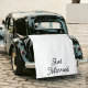 A custom wedding "Just Married" fabric car banner sign perfect for your wedding. This "Just Married" car banner sign used script calligraphy script perfect for any wedding. Use the words "Just Married" or customize them to suit your wedding. Order the size based on your vehicle.