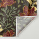 Seamless pattern featuring repeating dark red maple leaves, pale yellow sprigs, and dark green swirling vines on a dark brown background.