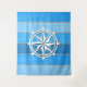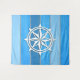 Design de temas náuticos com decoração em bússola sobre fundo de madeira azul e cinza listrado. Por favor, note que isto não é feito de madeira, é um impressão gráfico de madeira.