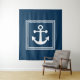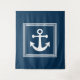 Design com temas náuticos com decoração de âncora em quadrados com faixas de fundo em fundo azul