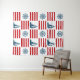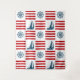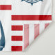 Design náutica com barco à vela e decoração de bússolas em fundo listrado vermelho e branco
