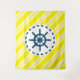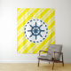Design náutico com decoração das rodas de vela em fundo listrado a amarelo e a branco
