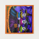 Esta pintura colorida e festiva de três bruxas com rostos cranianos e roupas coloridas é perfeita para qualquer festa ou decoração do Halloween. O céu roxo escuro com lua de cheio e morcegos voando ao fundo aumenta a atmosfera assustadora. Prepare-se para um Halloween mimático com esta pintura que certamente adiciona um toque de magia à sua celebração de Halloween. Esta design é perfeita para qualquer fã do Halloween.