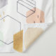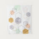 Hex Scatter I de Gabrielle McClure. Hexágonos de várias formas e designs espalhados por um fundo branco.
