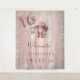 Uma tapeçaria bem-vinda para uma menina e glamourosa Doce 16, 16ª festa de aniversário. Um fundo metálico de aspecto rosa dourado falso, decorado com pó falso de prata brilhante. Personalize e adicione uma foto e um nome de alta qualidade. O número 16 é escrito com uma fonte no estilo do balão. Também pode ser usado como pano de fundo da cabine de fotos e decoração na parede da festa.