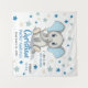 Adorável design de natalidade infantil com um desenho animado de elefante giro com orelhas azuis e estrelas em azul escuro e claro e natas. Fácil de personalizar substituindo o nome e os detalhes pelo seu próprio.