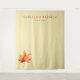 This wedding backdrop features a minimalist design with a warm beige background, creating an elegant and uncluttered look. The centerpiece is a beautifully illustrated maple leaf in gradient colors of red and yellow, suggesting an autumn theme. Customizable text at the top allows for personalization with names and dates, while the clean serif font adds a touch of sophistication. The overall style is modern minimalism, perfect for couples seeking understated elegance on their special day.