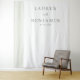 This wedding backdrop features a minimalist design with a clean, elegant aesthetic. The layout is vertically oriented, showcasing a soft, neutral color palette of light beige or off-white background complemented by muted gray tones for text and decorative elements. Vertical striped patterns on the left add subtle texture, while centered typography in uppercase serif fonts highlights the names and date, creating a balanced and sophisticated look. The ample negative space enhances simplicity, making it perfect for a modern, understated celebration.