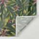 Seamless pattern featuring pink flowers and green leaves on a dark background. The arrangement is symmetrical, evoking a natural, elegant feel.