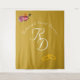 Design features an ochre-colored background to the initials of bride and groom displayed in an elegant pale-cream Nuptial font and joined together. Customizable message is displayed above as an arch. Top left corner features the image of the Sacred and Immaculate Hearts of Jesus and Mary together. Bottom left displays the image of joined wedding rings. Designed to coordinate with the "Two Hearts Catholic Wedding Suite (Cream/Ochre)" collection. Available in a variety of colors.