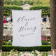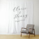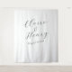 Make a stylish statement at your wedding with this elegant script tapestry backdrop, designed with modern handwritten calligraphy and a clean, minimalist layout. Whether used behind the sweetheart table, at your ceremony altar, or as a photo booth backdrop, this fabric banner creates a romantic focal point with its oversized lettering and timeless aesthetic. Perfect for couples seeking a sophisticated, modern look, this design complements a variety of wedding styles—from classic black tie to contemporary garden celebrations. Available in multiple sizes to suit your space, and fully customizable with your names, date, or a meaningful quote.
