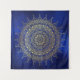 Uma magnífica design de mandala floral circular em ouro luminoso em fundo azul profundo, inspirada pela arte do corpo de hndi henna. Esta arte meditativa faz uma bela adição à sua decoração caseira. Esta versão é formatada para a tapeçaria quadrada. Também oferecemos uma versão retangular.