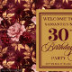 Transforme a celebração do seu marco com este fundo de aniversário de 30 anos em aquarela boho burgundy, rosa e dourado. Projetado com flores burgundy e rosa exuberantes, detalhes delicados em aquarela e sotaques dourados cintilantes, este design elegante traz sofisticação e charme para o seu dia especial.