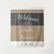 Elegante e simples tapeçaria de casamento em bege e cinza. Design elegante e moderno em cores bege e cinza escuro. Letra trendy em branco - adicione os nomes da noiva e do noivo e a data do casamento.
