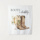 Adicione um toque de charme rústico à sua celebração com este painel de fundo para chá de noiva Boots & Bubbly. Projetado para complementar seu convite, apresenta botas de cowboy elegantes e uma taça de champanhe transbordando com flores de creme - perfeito para criar uma atmosfera calorosa e country-chic. Um belo cenário para fotos, presentes ou o bar de espumantes!