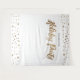 Monte uma estação de selfie que duplica como um sinal de boas-vindas na sua próxima Festa de Natal Corporativa. Impressão em ouro "Festa de Fim de Ano" para combinar com os convites desta coleção. Pontos de confete dourados em um fundo branco elegante.